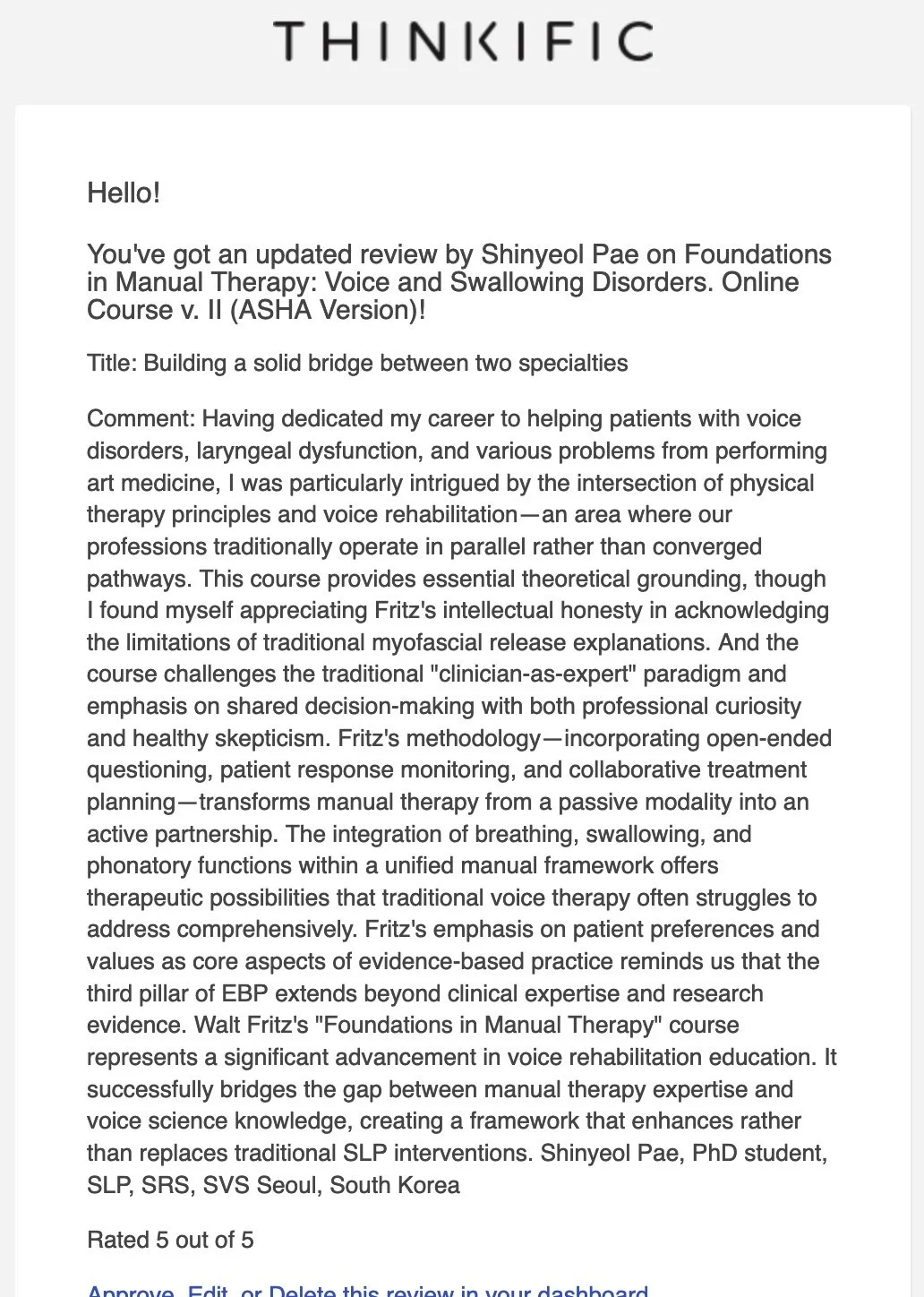 Online Learning in the Foundations in Manual Therapy: Voice and Swallowing Disorders Curriculum